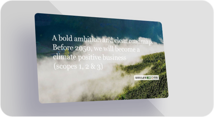 A bold ambition and clear roadmap. Before 2050, we will become a climate positive business (scopes 1, 2 & 3)