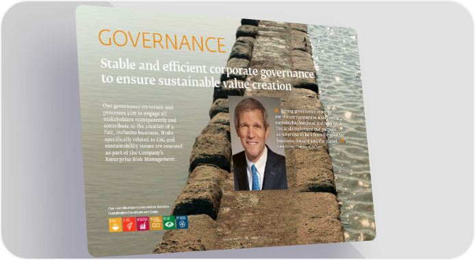 GOVERNANCE Stable and efficient corporate governance to ensure sustainable value creation Our governance structure and Strong governance systems processes aim to engage all are the cornerstone of a successful, stakeholders transparently and sustainable business and help us to contribute to the creation of a live and implement our purpose, fair, inclusive business. Risks as we strive to be a force for good for specifically related to ESG and business, society and the planet. sustainability issues are assessed Calvin Grieder, Chairman of the Board as part of the Company’s Enterprise Risk Management. Our contribution to the United Nations Sustainable Development Goals Givaudan and ESG 10 February 2022