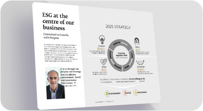 ESG at the centre of our 2025 STRATEGY business Committed to Growth, with Purpose As a purpose-led company, we can go even further to Creations Nature make our world a happier and healthier place. Our E S G E G purpose, a guiding star in our 2025 strategy, leads the We create inspiring solutions We show our love for nature way to increasing our positive impact on society and for happier, healthier lives Growing through impactful actions the planet in order to ensure our sustainable long-term together with performance. It is our intention to deliver growth through creating inspiring products for happier, our customers healthier lives while achieving our ambitious financial targets and longer-term purpose ambitions. People Communities It is through our S G E S G purpose and strategy We nurture a place where We bring benefits to all that we address we all love to be and grow communities that work with us Environment, Social Excellence, innovation, simplicity in everything we do and Governance 4 – 5% GROWTH PURPOSED LINKED TARGETS > 12% FCF (ESG) issues. Gilles Andrier, CEO nvironment ocial overnance E S G Givaudan and ESG 2 February 2022