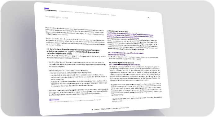 Except for those described in section 3.1, no Board member of Givaudan SA holds any material permanent management or consultancy functions for significant domestic or foreign interest groups nor any significant official functions or political posts. The Board of Directors assesses the independence of its members. As at 31 December 2021, all members of the Board of Directors were non-executive and independent i n accordance with article 14 of the Swiss Code of Best Practice for Corporate Governance. None of the Board members has important business connections with Givaudan SA or any of its affiliates. 3.3 Rules in the Articles of Incorporation on the number of permitted activities pursuant to Art. 12 para. 1 point 1 of the Ordinance against Excessive Compensation (OaEC) Article 32 of the Articles of Incorporation of the Company permits the following external mandates for members of the Board of Directors: – Members of the Board of Directors may not hold more than four additional mandates in companies that are quoted on an official stock exchange and seven additional mandates in non-quoted companies. – The following mandates are not subject to these limitations: • mandates in companies which are controlled by the corporation • mandates held by order and on behalf of the corporation or any controlled company. No member of the Board of Directors or of the Executive Committee shall hold more than ten such mandates • mandates in associations, foundations, charitable organisations, trusts, employee welfare foundations and other comparable structures. No member of the Board of Directors or of the Executive Committee shall hold more than 15 such mandates. ‘Mandates’ mean mandates in the supreme governing body of a legal entity which is required to be registered in the Swiss commercial register or a corresponding foreign register. Mandates in different legal entities which are under joint control are deemed one mandate. DOWNLOAD www.givaudan.com ▸ Our company ▸ Corporate governance ▸ Rules and policies ▸ Articles of incorporation 3.4 Elections and terms of office 3.4.1 Principles of the election procedure, rules differing from the statutory legal provisions with regard to the appointment of the Chairman, the members of the Compensation Committee and the independent proxy The Company amended its Articles of Incorporation at the Annual General Meeting 2014 to align with the requirements of the OaEC. The rules regarding the appointment of the Chairman, the members of the Compensation Committee and the independent proxy do not deviate from the statutory legal provisions. All Board members, the Chairman, the members of the Compensation Committee and the independent proxy are elected annually and individually for one year, being the time from one ordinary Annual General Meeting to the next one. 3.4.2 For each Board member: date of first election to Board and attendance of meetings For the dates of first election to the Board and attendance of Board and committee meetings, please refer to the tables on pages 7-9 and table on page 13. 3.5 Internal organisational structure 3.5.1 Allocation of tasks among the Board members The Chairman is elected annually at the Annual General Meeting. He prepares the agenda and chairs meetings of the shareholders, convenes, prepares and chairs the meetings of the Board of Directors, coordinates the work of the Board committees, prepares and supervises the implementation of resolutions of the Board of Directors (to the extent not delegated to a committee), supervises the course of business and the activities of the Executive Committee, proposes succession candidates for appointment to the Board of Directors or to the Executive Committee and proposes the global remuneration of the Chief Executive Officer and other members of the Executive Committee to the Compensation Committee. The Chairman receives all invitations and minutes of Committee meetings and is entitled to attend these meetings. The Chairman further decides in cases which fall under the tasks and powers of the Board of Directors, but in which a timely decision of the Board of Directors cannot be made because of urgency. In such cases, the Chairman informs the members of the Board of Directors as quickly as possible and the corresponding resolution is minuted at the next Board meeting. If the Chairman is unable to act, the Vice-Chairman exercises his functions, assuming all his tasks and powers. Corporate governance Governance Report Compensation Report Consolidated Financial Report Statutory Financial Report Appendix 10 Givaudan — 2021 Governance, Compensation and Financial Report