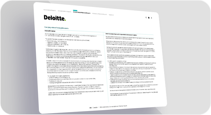 Carrying value of intangible assets Key audit matter How the scope of our audit responded to the key audit matter As of 31 December 2021, Givaudan carries intangible assets of CHF 4,853 million of which goodwill of CHF 3,496 million and other intangible assets of CHF 1,357 million. The goodwill has been allocated to the following four Cash Generating Units (“CGUs”): – T aste & Wellbeing: CHF 2,370 million, – Fragrance & Beauty: CHF 889 million, – Expressions Parfumées: CHF 129 million, – Fragrance Oils: CHF 108 million. Furthermore, Givaudan holds intangible assets that were recognised from previous business combinations amounting to CHF 1,156 million. These assets are mainly technology-related assets, customer and suppliers’ relationships and brand names. These assets have been recognised during the initial purchase price allocations in accordance with IFRS 3 Business Combination. The valuation of software is not part of our Key Audit Matter consideration as Software and ERP system assets (carrying value CHF 201 million as of 31 December 2021) have not been recognised from acquisition accounting. As stated in Note 2.17 to the consolidated financial statements, the carrying value of goodwill and intangible assets with infinite useful economic life is tested for impairment annually or more frequently if impairment indicators are present. Management has not identified any indicators of impairment in the period. For Goodwill, Management has proceeded to an evaluation of the recoverable amount of the CGUs by comparing the recoverable value of the assets with their carrying values. Management performed its annual impairment test of goodwill in the fourth quarter of 2021 and has calculated the value-in-use in order to estimate the recoverable value of the assets. In order to derive the value in use of the assets attributable to the CGUs, Management has prepared discounted cash flows models. The key inputs that require judgment are: – The identification of the relevant CGUs; – The estimate of the future cash flows the entity expects to derive from each of the CGUs; – The discount rates; and – The long-term growth rate used to derive the terminal value. Management concluded that in all cases, value-in-use formed the basis of the impairment conclusions and that no impairment should be recognised on that basis. A sensitivity analysis considering changes in assumptions in the cash flows and in the discount rates does not give rise to any material impairment. Further details in relation to management impairment considerations have been provided in Note 22, with details regarding the discount rates used for each of the CGUs. We assessed the internal controls in relation to the identification of impairment indicators. We independently performed our own assessment of impairment indicators. We gained an understanding of the internal controls relating to the projected financial information process and approval, the preparation and review of the weighted average cost of capital and preparation and review of the asset impairment models for Goodwill and intangible assets with indefinite useful life. We have inquired with management about the presence of impairment indicators for the intangible assets that have been recognised from current and past business combinations. We have corroborated the results of our inquiries with a review of the financial performance of the underlying markets and legal entities as well as inquiries with personnel outside the finance function. We evaluated and challenged the key assumptions and inputs to the impairment models by independently estimating a range of acceptable outcome and performing sensitivity analyses in order to evaluate the impact of selecting alternative assumptions. In challenging the assumptions, we have: – Considered the appropriateness of the judgment that Expressions Parfumées and Fragrance Oils constitute separate CGUs and that the 2021 acquisitions are integrated to the Fragrance & Beauty and Taste & Wellbeing CGUs; – Assessed the appropriateness of the discount rates used by involving our internal valuation specialists to evaluate the reasonableness of management’s key inputs used in deriving the discount rates. This included benchmarking these inputs against available market data; – Evaluated the appropriateness of the long-term growth rates applied to derive the terminal value by tracing them back to a prominent source of macroeconomic projections; – Tested the extent to which projected financial information can be reliably prepared by management by performing retrospective review to compare prior period forecasts with actual results and reviewed any budget revision and considering management track record in delivering their forecast; – Confirmed that forecasted cash flows were consistent with Board approved forecasts and analysed reasonably possible downside sensitivities; – Evaluated the sensitivity in the valuation resulting from changes to the key assumptions applied. We audited the integrity of the impairment models and cash flow forecasts. We considered the compliance of management’s impairment models with the requirements of IAS 36 Impairment of Assets. We have compared management estimates of economic useful life with the actual usage of the assets. We also reviewed the appropriateness of the amortisation method and related charges for intangible assets with a definite useful economic life. 101 Givaudan — 2021 Governance, Compensation and Financial Report Governance Report Compensation Report Consolidated Financial Report Statutory Financial Report Appendix
