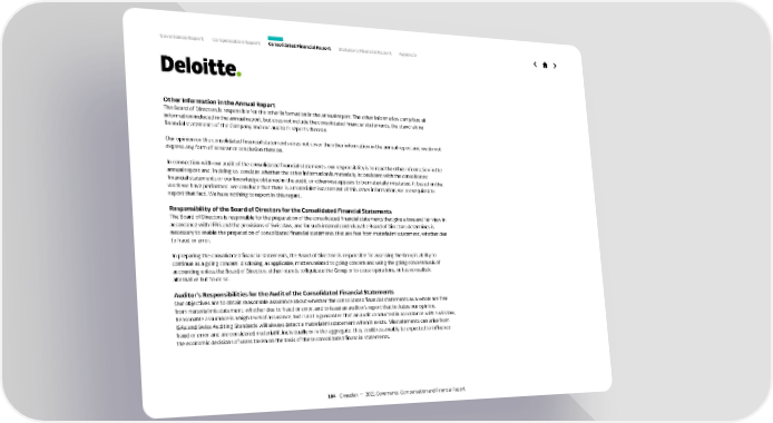 Other Information in the Annual Report The Board of Directors is responsible for the other information in the annual report. The other information comprises all information included in the annual report, but does not include the consolidated financial statements, the stand-alone financial statements of the Company and our auditor’s reports thereon. Our opinion on the consolidated financial statements does not cover the other information in the annual report and we do not express any form of assurance conclusion thereon. In connection with our audit of the consolidated financial statements, our responsibility is to read the other information in the annual report and, in doing so, consider whether the other information is materially inconsistent with the consolidated financial statements or our knowledge obtained in the audit, or otherwise appears to be materially misstated. If, based on the work we have performed, we conclude that there is a material misstatement of this other information, we are required to report that fact. We have nothing to report in this regard. Responsibility of the Board of Directors for the Consolidated Financial Statements The Board of Directors is responsible for the preparation of the consolidated financial statements that give a true and fair view in accordance with IFRS and the provisions of Swiss law, and for such internal control as the Board of Directors determines is necessary to enable the preparation of consolidated financial statements that are free from material misstatement, whether due to fraud or error. In preparing the consolidated financial statements, the Board of Directors is responsible for assessing the Group’s ability to continue as a going concern, disclosing, as applicable, matters related to going concern and using the going concern basis of accounting unless the Board of Directors either intends to liquidate the Group or to cease operations, or has no realistic alternative but to do so. Auditor’s Responsibilities for the Audit of the Consolidated Financial Statements Our objectives are to obtain reasonable assurance about whether the consolidated financial statements as a whole are free from material misstatement, whether due to fraud or error, and to issue an auditor’s report that includes our opinion. Reasonable assurance is a high level of assurance, but is not a guarantee that an audit conducted in accordance with Swiss law, ISAs and Swiss Auditing Standards will always detect a material misstatement when it exists. Misstatements can arise from fraud or error and are considered material if, individually or in the aggregate, they could reasonably be expected to influence the economic decisions of users taken on the basis of these consolidated financial statements. 104 Givaudan — 2021 Governance, Compensation and Financial Report Governance Report Compensation Report Consolidated Financial Report Statutory Financial Report Appendix