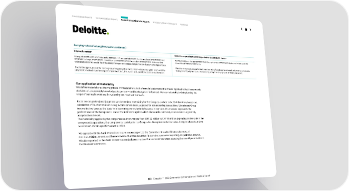Carrying value of intangible assets (continued) Key audit matter How the scope of our audit responded to the key audit matter Intangible assets with a definite useful economic life are carried at cost less accumulated amortisation and accumulated impairment losses. In addition to the amortisation booked on a straight-line basis over the estimated economic useful life of the asset, management assessed impairment indicators on a regular basis. Due to the significance of the carrying value for goodwill and acquisition-related intangible assets and the judgments involved in performing the impairment test, this matter was considered as a key audit matter. We have validated the appropriateness and completeness of the related disclosures in Note 22 to the consolidated financial statements. Based on the procedures performed, we obtained sufficient appropriate audit evidence to corroborate management’s judgments and estimates regarding the carrying value for intangibles assets. Our application of materiality We define materiality as the magnitude of misstatement in the financial statements that makes it probable that the economic decisions of a reasonably knowledgeable person would be changed or influenced. We use materiality both in planning the scope of our audit work and in evaluating the results of our work. Based on our professional judgment we determined materiality for the Group as a whole to be CHF 65 million, based on a calculation of 7% of normalised Group income before taxes, adjusted for non-recurring transactions. We selected Group income before taxes as the basis for determining our materiality because, in our view, this measure represents the performance of the Group and is one of the indicators against which Givaudan is commonly assessed and is a generally accepted benchmark. The materiality applied by the component auditors ranged from CHF 20 million to CHF 49 million depending on the scale of the component’s operations, the component’s contribution to Group sales, Group income before taxes, Group total assets and our assessment of risks specific to each location. We agreed with the Audit Committee that we would report to the Committee all audit differences in excess of CHF 3.25 million, as well as differences below that threshold that, in our view, warranted reporting on qualitative grounds. We also reported to the Audit Committee on disclosure matters that we identified when assessing the overall presentation of the financial statements. 102 Givaudan — 2021 Governance, Compensation and Financial Report Governance Report Compensation Report Consolidated Financial Report Statutory Financial Report Appendix