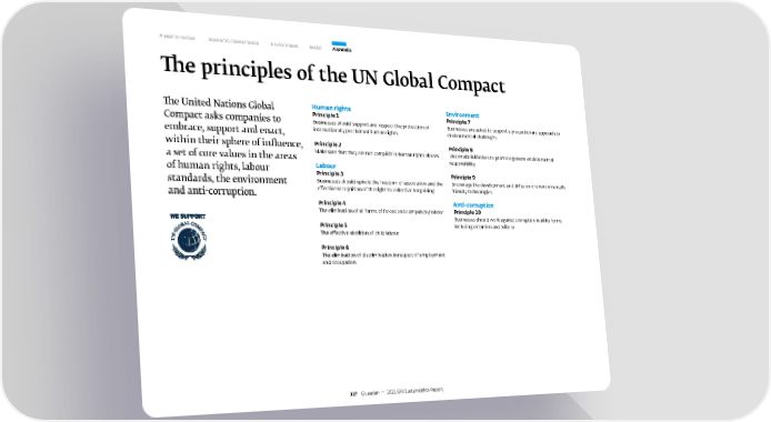 A year in review Economic / Governance Environment Social Appendix The principles of the UN Global Compact The United Nations Global Human rights Environment Compact asks companies to Principle 1 Principle 7 Businesses should support and respect the protection of Businesses are asked to support a precautionary approach to embrace, support and enact, internationally proclaimed human rights environmental challenges within their sphere of influence, Principle 2 Principle 8 a set of core values in the areas Make sure that they are not complicit in human rights abuses Undertake initiatives to promote greater environmental responsibility of human rights, labour Labour Principle 3 Principle 9 standards, the environment Businesses should uphold the freedom of association and the Encourage the development and diffusion of environmentally and anti-corruption. effective recognition of the right to collective bargaining friendly technologies Principle 4 Anti-corruption The elimination of all forms of forced and compulsory labour Principle 10 Businesses should work against corruption in all its forms, Principle 5 including extortion and bribery The effective abolition of child labour Principle 6 The elimination of discrimination in respect of employment and occupation 117 Givaudan — 2021 GRI Sustainability Report