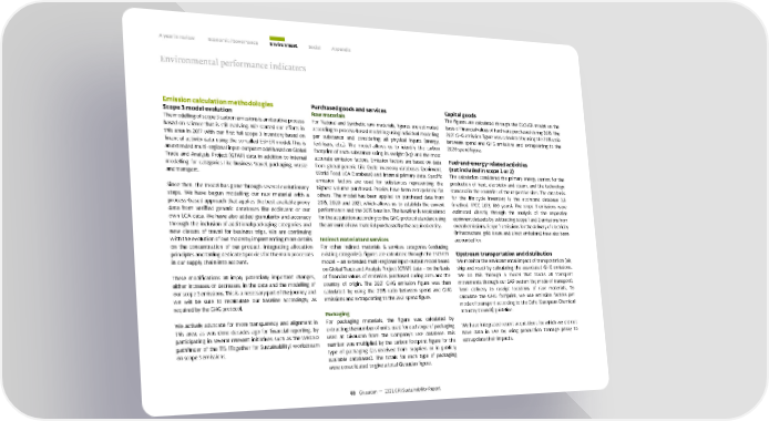 A year in review Economic / Governance Environment Social Appendix Environmental performance indicators Emission calculation methodologies Purchased goods and services Capital goods Scope 3 model evolution Raw materials The figures are calculated through the ESCHER model on the The modelling of scope 3 carbon emissions is an iterative process For Natural and Synthetic raw materials, figures are estimated basis of financial values of hardware purchased during 2015. The based on science that is still evolving. We started our efforts in according to process-based modelling using individual modelling 2021 GHG emission figure was calculated by using the 2015 ratio this area in 2017 with our first full scope 3 inventory based on per substance and considering all physical inputs (energy, between spend and GHG emissions and extrapolating to the financial activity data using the so-called ESHER model. This is fertilisers, etc.). The model allows us to identify the carbon 2020 spend figure. an extended multi-regional input-output model based on Global footprint of each substance using its weight (kg) and the most Trade and Analysis Project (GTAP) data in addition to internal accurate emission factors. Emission factors are based on data Fuel-and-energy-related activities modelling for categories like business travel, packaging, waste from global generic Life Cycle Inventory databases (ecoinvent, (not included in scope 1 or 2) and transport. World Food LCA Database) and internal primary data. Specific The calculation considered the primary energy carriers for the emission factors are used for substances representing the production of heat, electricity and steam, and the technology Since then, the model has gone through several evolutionary highest volume purchased. Proxies have been extrapolated for standard in the countries of the respective sites. The data basis steps. We have begun modelling our raw material with a others. The model has been applied on purchased data from for the life-cycle inventory is the ecoinvent database 3.6 process-based approach that applies the best available proxy 2015, 2020 and 2021, which allows us to establish the current (method: IPCC 2013, 100 years). The scope 3 emissions were data from verified generic databases like ecoinvent or our performance and the 2015 baseline. The baseline is recalculated estimated directly through the analysis of the respective own LCA data. We have also added granularity and accuracy for the acquisition according to the GHG protocol standard using ecoinvent datasets by subtracting scope 1 and 2 emissions from through the inclusion of additional packaging categories and the amount of raw material purchased by the acquired entity. overall emissions. Scope 3 emissions for the delivery of electricity new classes of travel for business trips. We are continuing (infrastructure, grid losses and direct emissions) have also been with the evolution of our model by implementing more details Indirect material and services accounted for. on the concentration of our product, integrating allocation For other Indirect materials & services categories (excluding principles and taking dedicated proxies for the main processes existing categories), figures are calculated through the ESCHER Upstream transportation and distribution in our supply chain into account. model – an extended multi-regional input-output model based We monitor the environmental impact of transportation (air, on Global Trade and Analysis Project (GTAP) data – on the basis ship and road) by calculating the associated GHG emissions. These modifications all imply potentially important changes, of financial values of materials purchased during 2015 and the We do this through a model that tracks all transport either increases or decreases, in the data and the modelling of country of origin. The 2021 GHG emission figure was then movements through our SAP system (by mode of transport), our scope 3 emissions. This is a necessary part of the journey and calculated by using the 2015 ratio between spend and GHG from delivery to receipt locations of raw materials. To we will be sure to recalculate our baseline accordingly, as emissions and extrapolating to the 2021 spend figure. calculate the GHG footprint, we use emission factors per required by the GHG protocol. mode of transport according to the Cefic (European Chemical Packaging Industry Council) guideline. We actively advocate for more transparency and alignment in For packaging materials, the figure was calculated by this area, as was done decades ago for financial reporting, by extracting the number of units used for each type of packaging We have integrated recent acquisitions for which we did not participating in several relevant initiatives such as the WBCSD used at Givaudan from the Company’s ERP database. This have data in SAP by using production tonnage proxy to pathfinder of the TfS (Together for Sustainability) workstream number was multiplied by the carbon footprint figure for the extrapolate their impacts. on scope 3 emissions. type of packaging (as received from suppliers or in publicly available databases). The totals for each type of packaging were consolidated to give a total Givaudan figure. 83 Givaudan — 2021 GRI Sustainability Report