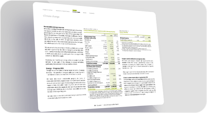 A year in review Economic / Governance Environment Social Appendix Climate change Renewable energy sources Disclosure 302 – 1, 302 – 4 Disclosure 302 – 3 Innovative sourcing strategies are an important part of reaching Energy consumption and reduction within the organisation Energy intensity our targets. In 2020, we set a new renewable electricity strategy Change to 2020 2015 2020 prioritising first on-site generation, then off-site generation and (restated) ¹ 2021 ² 2020 in % (restated)¹ (restated) ² 2021 ³ finally the purchase of Electricity Attribute Certificates (EACs). Direct energy: from Energy intensity Our stringent procurement strategy helps add more renewable primary sources (GJ) (GJ per tonne of product) 6.98 6.57 6.52 electricity to the grid. In 2021, we purchased electricity that Natural Gas 2,121,738 2,166,714 2% 1. Assured 2015 full-year figures. accounted for 32% of the total energy used across the Company Town Gas 172 257 49% These values are excluding the acquisitions done of Naturex, Vika and drom sites. but which equated to 15% of our total CO₂ emissions. LP Gas 10,119 10,827 7% 2. A ssured 12-month rolling figures (Q4 2019 to Q3 2020) for values excluding the acquisitions of Naturex, Vika and drom sites. These latter figures have not Light fuel oil 34,381 40,592 18% been assured by the third-party auditor. Heavy fuel oil 91,367 93,664 3% See the "Restatements of information" section for restatements. We are proud to be a member of RE100, a collaborative, global 3. A ssured 12-month rolling figures (Q4 2020 to Q3 2021) for values including initiative organised by the Climate Group in partnership with Biofuel 217 397 83% the acquisitions of Naturex, Vika and drom sites. CDP. It unites more than 300 influential businesses committed Biogas 0 76 to 100% renewable electricity and is part of our strategy to fully Biomass 23,776 22,626 (5%) convert our electricity supply. Steam sold from steam produced on site 25,294 30,735 22% Scope 1 and 2 emissions progress 2021 Replacing our fossil-based energy with renewable fuels like Geothermal 6,294 8,107 29% We made good progress towards our targets in 2021 with biofuels is also part of the strategy to reduce emissions, Waste used as energy 181,324 199,330 10% absolute total direct (scope 1) and indirect (scope 2) GHG particularly those related to the production of heat. Total direct energy 2,444,093 2,511,855 3% emissions decreasing by 75,600 tonnes. The evolution of Indirect energy: purchased absolute total scope 1 and 2 GHG emissions in 2021 vs. the 2015 electricity and steam (GJ) Energy – Progress 2021 Electricity purchased 1,231,837 1,217,506 (1%) baseline was –31%. Though we do not have a formal target in terms of energy Electricity purchased intensity – the quantity of energy required per tonne of product covered by Energy Attribute Our scope 1 and 2 GHG emissions intensity (GHG emissions/ – we have recorded a decrease of 0,7% for 2021 vs. 2020. Certificates – 1,026,918 tonne of product) decreased by 11% in 2021 vs 2020. Electricity sold 4,499 7,487 66% We have also made considerable progress in terms of Electricity self-produced Climate action leadership recognised by CDP renewable electricity supply (scope 2 GHG emissions) and are from renewable sources 5,135 8,528 66% Demonstrating our industry leadership in climate action and the on track to meet our target of converting our entire electricity Electricity self-produced transition to a low-carbon economy, we once again participated supply to fully renewable sources by 2025. We attained 84% from non-renewable sources 44,236 60,343 36% in the annual Climate Change CDP questionnaire for investors as renewable electricity supply in 2021 and 45 production sites Steam purchased 75,053 80,838 8% well as in the Climate Change Supply Chain questionnaire at the were powered 100% by electricity from renewable sources by Total indirect energy 1,307,527 1,299,385 (1%) request of a number of customers. This allows us to showcase our the end of the reporting year. Total energy 3,751,620 3,811,240 2% efforts to reduce GHG emissions and also provides a basis of 1. Assured 12-month rolling figures (Q4 2019 to Q3 2020) for values excluding comparison against other companies. Our CDP score was this the acquisitions of Naturex, Vika and drom sites. These latter figures have been We also reduced the GHG emission load per purchased KWh included in the reported values, but have not been assured by the third-party year an A (on a scale of A to D, with A being the highest) for of electricity by 45% for 2021 vs. 2020. auditor. See the "Restatements of information" section for restatements. Climate, at the leadership level once again. 2. Assured 12-month rolling figures (Q4 2020 to Q3 2021) for values including the acquisitions of Naturex, Vika and drom sites. 54 Givaudan — 2021 GRI Sustainability Report