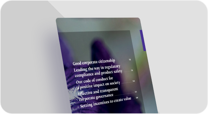 Value-based governance Good corporate citizenship ___________________________________________________________________ 112 Leading the way in regulatory compliance and product safety ________________________________________ 115 Our code of conduct for a positive impact on society ___________________________________________________________ 120 Effective and transparent corporate governance _________________________________________________________________________________________________________ 123 Setting incentives to create value ___________________ 129