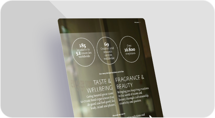 Discover our world Enlivening the planet with innovative solutions and delivering the highest standards across our value chain, from operational and financial performance to delivering a superior customer experience. Let’s imagine together 185 locations in 52 countries worldwide Over 16,800 employees 69 Creation and research centres worldwide TA STE & WELLBEING Going beyond great taste to create food experiences that do good and feel good, for body, mind and planet. FRAGRANCE & BEAUTY Bringing you inspiring creations in the world of scent and beauty through craftsmanship, creativity and passion. Our two principal business activities Givaudan – 2021 Integrated Annual Report Who we are 1