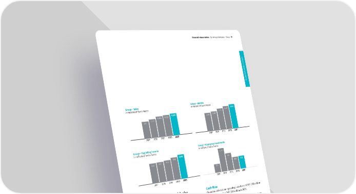 Group – Operating income in millions of Swiss francs Group – Total gross investments in millions of Swiss francs Group – Sales in millions of Swiss francs Group – EBITDA in millions of Swiss francs 2021 2020 2019 2018 2017 , , , , , 2021 2020 2019 2018 2017 , , , , , 2021 2020 2019 2018 2017 , 2021 2020 2019 2018 2017 , Cash flow Givaudan delivered an operating cash flow of CHF 1,288 million in 2021, compared to CHF 1,189 million in 2020. Net working capital as a percentage of sales was 24.0%, compared to 24.4% in 2020. Total net investments in property, plant and equipment were CHF 177 million, compared to CHF 180 million in 2020, as the Group continues to invest in expanding its capabilities in high growth markets. Intangible asset additions were CHF 70 million in 2021, compared to CHF 37 million in 2020 as the Company continued to invest in its IT platform capabilities, including those related to the integration of the acquisitions that the Group has made. I am very pleased with the s uccessful start that we have made into our 2025 strategic cycle, with all parts of our business and our strategic focus areas contributing to the strong financial results that we have achieved in 2021. Gilles Andrier, CEO Givaudan – 2021 Integrated Annual Report Financial value creation Bu siness performance – Group 41 Financial value cration