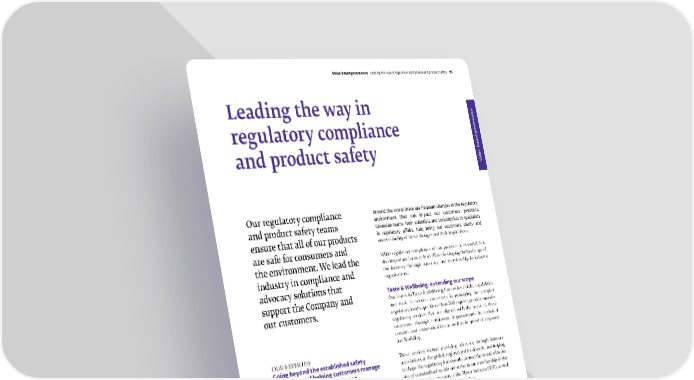 Value-based governance Leading the way in regulatory compliance and product safety Our regulatory compliance and product safety teams ensure that all of our products are safe for consumers and the environment. We lead the industry in compliance and advocacy solutions that support the Company and our customers. Around the world there are frequent changes in the regulatory environment that can impact our customers’ products. Givaudan teams, from scientists and toxicologists to specialists in regulatory affairs, help bring our customers clarity and understanding of these changes and their implications. While regulatory compliance of our products is essential, it is also important for us to lead efforts in shaping the landscape of our industry through advocacy and membership in industry organisations. Taste & Wellbeing: extending our scope Our teams in Taste & Wellbeing have unique skills, capabilities and tools to service customers in managing the complex regulatory landscape. More than 200 experts provide superior regulatory services that are aligned with the needs of these customers through continuous improvements in technical content and communication as well as in speed of response and flexibility. These services include providing advocacy through industry associations at the global, regional and local levels, and helping to shape the regulatory frameworks around the world with the aim of standardisation. We are active in our membership of the International Organization of the Flavor Industry (IOFI) as well as regional and local industry associations. Our toxicology and product safety assessments have been expanded as our portfolio and business now extends into areas such as botanicals, naturals and food supplements. We ensure that we have all the relevant data in our compliance engine which is then able to produce comprehensive technical information services for our customers. This is an end-to-end process which starts with collecting information from suppliers, translating it in our compliance engine to our products and then providing the relevant information to customers. OUR EXPERTISE Going beyond the established safety standards and helping customers manage a complex regulatory landscape Regulatory expertise and advocacy Product stewardship Toxicology and product, human and environmental safety Data and systems management Compliance, communication and information services Givaudan – 2021 Integrated Annual Report Value-based governance Le ading the way in regulatory compliance and product safety 115