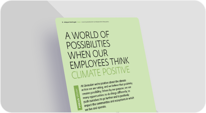 A WORLD OF POSSIBILITIES WHEN OUR EMPLOYEES THINK CLIMATE POSITIVE At Givaudan we’re positive about the climate action we are taking, and we believe that positivity creates possibility. Driven by our purpose, we see many opportunities: to do things differently, to push ourselves to go further and to positively impact the communities and ecosystems in which we live and operate. Our journey towards becoming climate positive before 2050 is inspiring employees to find new ways of working to help reduce our environmental impact. In doing so, our business units are discovering that doing the right thing for the environment is also the right thing for our business as it increases collaboration across teams and generates cost savings, too. Three projects from our production sites show what is possible with a positive attitude. Contributing to the United Nations Sustainable Development Goals (SDG) FOCUS STORY Givaudan – 2021 Integrated Annual Report 78 Acting as a force for good Nat ure A wo rld of possibilities when our employees think climate-positive