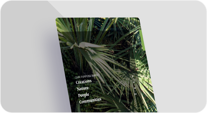 OUR PURPOSE IMPACT Creations ________________________________________________________________________________________________________________________________________________________________________________________________________ 53 Nature __________________________________________________________________________________________________________________________________________________________________________________________________________________________ 70 People _____________________________________________________________________________________________________________________________________________________________________________________________________________________________ 88 Communities ______________________________________________________________________________________________________________________________________________________________________ 100