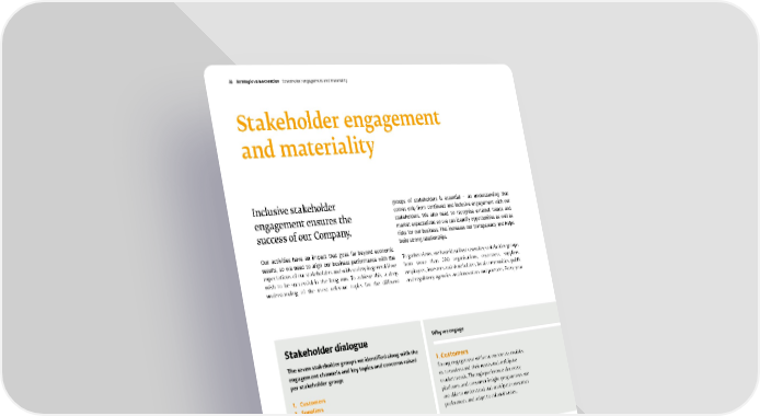 Stakeholder engagement and materiality Inclusive stakeholder engagement ensures the success of our Company. Our activities have an impact that goes far beyond economic results, so we need to align our business performance with the expectations of our stakeholders and with society in general if we wish to be successful in the long run. To achieve this, a deep understanding of the most relevant topics for the different Stakeholder dialogue The seven stakeholder groups we identified along with the engagement channels and key topics and concerns raised per stakeholder group: 1. Cus tomers 2. Sup pliers 3. Em ployees 4. In vestors & shareholders 5. Lo cal communities 6. Pu blic & regulatory agencies 7. In novators & partners 1. Customers Strong engagement with our customers enables us to understand their needs and anticipate market trends. Through preference discovery platforms and consumer insight programmes we are able to understand and anticipate consumer preferences and adapt to cultural tastes. 2. Suppliers Our suppliers are genuine partners and we work with them towards mutual value creation: open dialogue secures a pipeline of technological innovation through supplier enabled innovation; and supplier engagement and collaboration ensures our suppliers have high standards in business ethics and respect for people and the environment. Why we engage groups of stakeholders is essential – an understanding that comes only from continued and inclusive engagement with our stakeholders. We also need to recognise external trends and market expectations so we can identify opportunities as well as risks for our business. This increases our transparency and helps build strong relationships. To gather views, we have identified seven key stakeholder groups from more than 200 organisations, customers, suppliers, employees, investors and shareholders, local communities, public and regulatory agencies and innovators and partners. Every year Givaudan – 2021 Integrated Annual Report 32 Strategic value creation St akeholder engagement and materiality